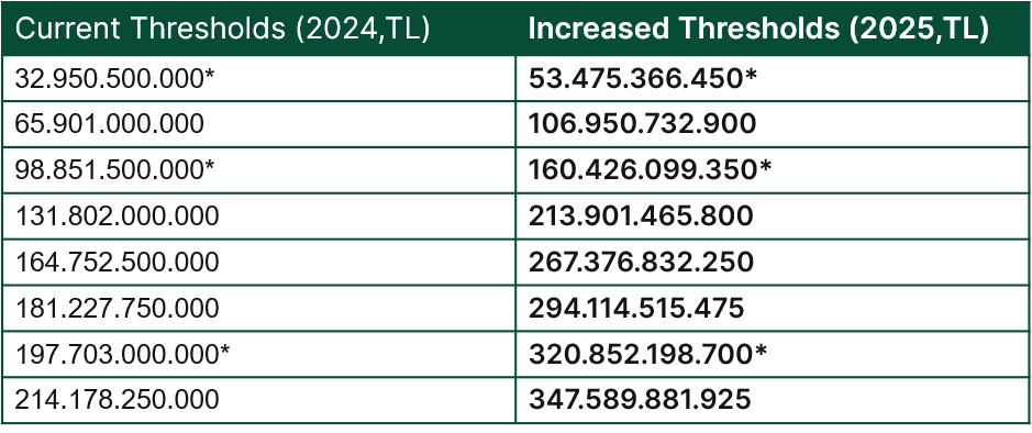 - The annual change in electronic commerce volume, which serves as the basis for determining the 2025 threshold values (total net transaction volume of ETAHS and ETHS), has been realized as 62.29%.