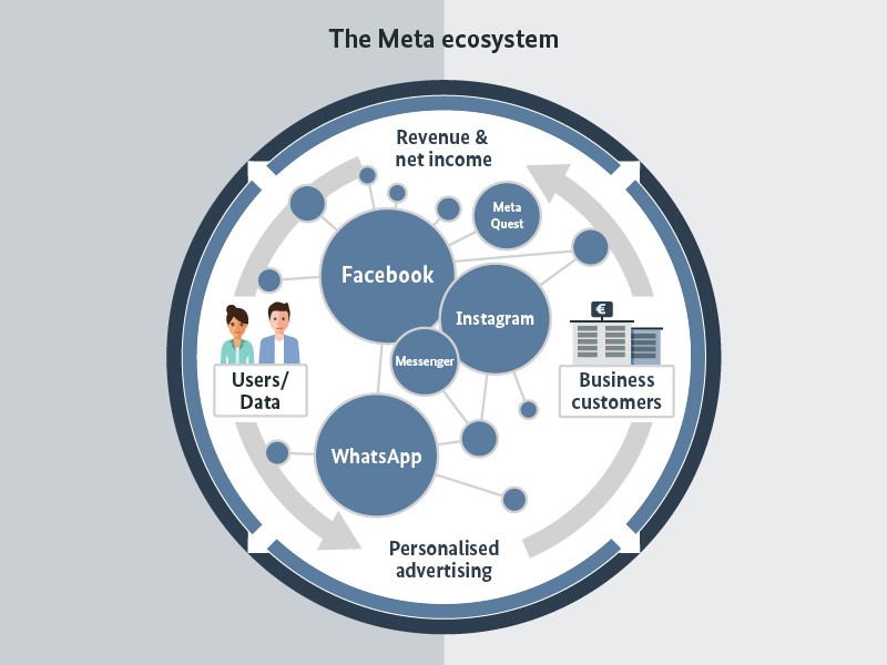 Yukarıdaki akış, kararın alındığı yıl olan 2022 yılından ama Meta grubunun iş modelini net olarak ortaya koyuyor. Dünyada yaklaşık 3,5 milyar insanın Meta kullanıcısı olduğunda akan veri ve dolayısıyla sahip olduğu pazar gücü daha da belirginleşiyor. Bu yolla sahip olduğu bu inanılmaz kullanıcı verisi nedeniyle Meta, sosyal medya üzerinden yapılan reklamlar açısından da önemli bir güç elde ediyor. Tüm maliyetlerinin finansmanını yukarıdaki akıştan elde ettiği gelir ile yapıyor. 2021 yılında bu yolla elde ettiği gelir 40 milyar dolar civarında.[5] Hatta öyle ki Meta grubu bir Metaverse yaratmak, yani 3 boyutlu bir sanal dünya yaratmak istiyor ve bunun için “Oculus” adlı 3 boyutlu bir gözlük üreticisini de satın aldı.